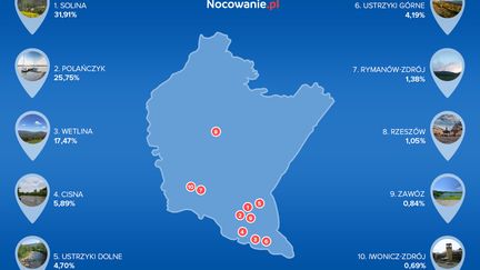 Województwo podkarpackie pojawia się coraz częściej wśród destynacji wybieranych przez turystów. W 2017 znalazło się na szóstym miejscu, prawie 5% wszystkich zapytań o nocleg w kraju stanowiły te z podkarpackiego.