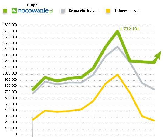 Grupa Nocowanie.pl potwierdziła pozycję jednego z najlepszych portali turystycznych w kraju. Według badań Gemius Megapanel za październik 2011, Grupa Nocowanie.pl plasuje się na trzecim miejscu zestawienia w Kategorii Turystyka, notując 1 213 212 realnych użytkowników.