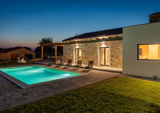 Natychmiastowa rezerwacjaJuršići Pokaż na mapie 11 km od Bale Darmowy parking Basen Jacuzzi Przyjazny zwierzętom Domek 10-osobowy Domek: 7 łóżek (4 pojedyncze, 3 podwójne)