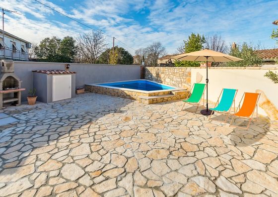 Natychmiastowa rezerwacjaJuršići Pokaż na mapie 300 m od Butkovići Darmowy parking Basen Jacuzzi Przyjazny zwierzętom Domek 10-osobowy Domek: 7 łóżek (4 pojedyncze, 3 podwójne)