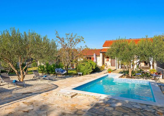 Natychmiastowa rezerwacjaSkradin Pokaż na mapie 10 km od Konjevrate Darmowy parking Basen Przyjazny zwierzętom WiFi Domek 5-osobowy Domek: 95 m2 3 łóżka (1 pojedyncze, 2 podwójne)