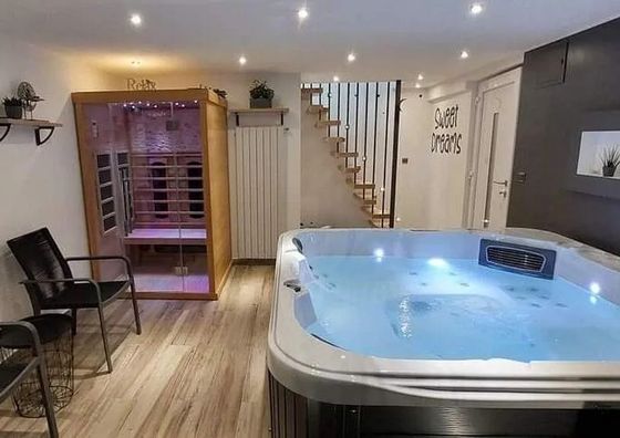 Darmowy parking Jacuzzi Przyjazny zwierzętom WiFi Domek 8-osobowy Domek: 143 m2 4 łóżka (1 pojedyncze, 3 podwójne)