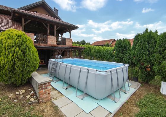 Natychmiastowa rezerwacjaVaraždin Breg Pokaż na mapie 8,4 km od Novi Marof Darmowy parking Jacuzzi Przyjazny zwierzętom WiFi Domek 6-osobowy Domek: 74 m2 3 łóżka (2 pojedyncze, 1 podwójne)