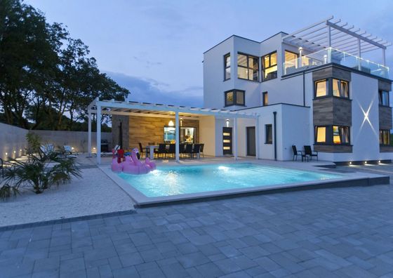 Pula Pokaż na mapie 4,1 km od Pomer Darmowy parking Basen Przyjazny zwierzętom WiFi Willa 12-osobowa Willa: 7 łóżek (2 pojedyncze, 5 podwójnych)