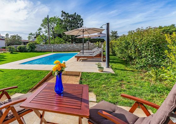 Pomer Pokaż na mapie 2,7 km od Premantura Darmowy parking Basen Jacuzzi Sauna Plac zabaw Willa 20-osobowa Willa: 11 łóżek (2 pojedyncze, 9 podwójnych)