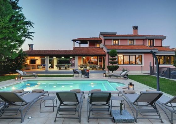Pomer Pokaż na mapie 9,7 km od Stinjan Darmowy parking Basen Jacuzzi Sauna Plac zabaw Przyjazny zwierzętom WiFi Willa 20-osobowa Willa: 11 łóżek (2 pojedyncze, 9 podwójnych)