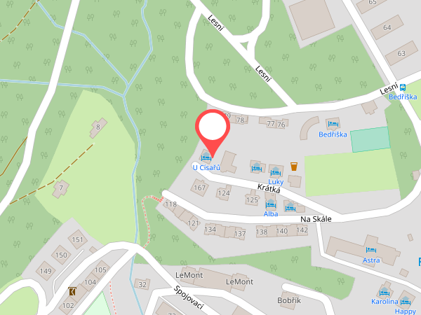Nasz pensjonat znajduje się w górnej części Spindleruv Mlyn, zdala od ruchu ulicznego, pod lasem, z widokiem na dolinę i góry.Oddalony jest 10 minut od centrum.