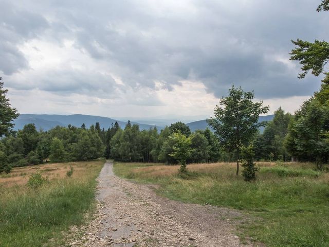 Żółty szlak na Hrobaczą Łąkę, tuż za parkingiem skręca w prawo. Początkowo szeroka trasa stopniowo przechodzi w wąską, leśną ścieżkę. Po około 45 minutach, żółty szlak łączy się z czarnym szlakiem, który prowadzi od strony Bielska-Białej. Za 15 minut dojdziecie do Przełęczy u Panienki, która znajduje się pomiędzy Groniczkiem i Hrobaczą Łąką.