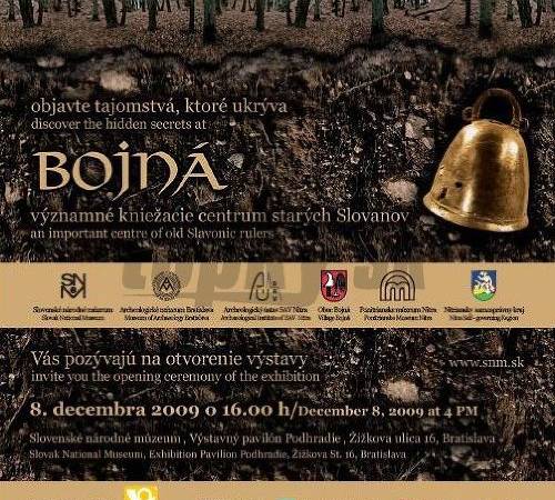 Bratislava 7. decembra 2009 – Slovenské národné múzeum-Archeologické múzeum v Bratislave, Archeologický ústav SAV Nitra, Ponitrianske múzeum Nitra, Obec Bojná oznamujú otvorenie výstavy Bojná / Významné kniežacie centrum starých Slovanov.
