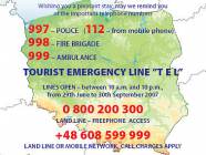 W sezonie letnim uruchomiony zostanie telefon bezpieczeństwa dla turystów zagranicznych przebywających w Polsce. Jest on uruchamiany w Polsce od 2002 roku w okresie wzmożonego, wakacyjnego ruchu turystycznego i stanowi odpowiedź naszego kraju na otwarcie unijnych granic oraz wizyty zagranicznych podróżnych.