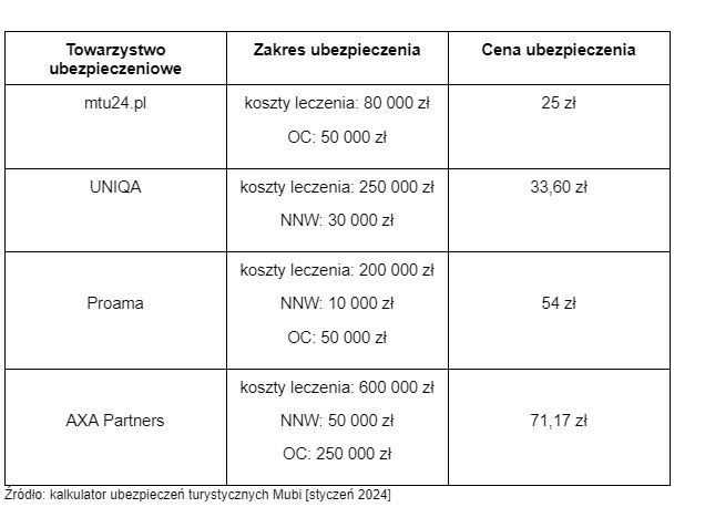 Koszt polisy na wyjazd