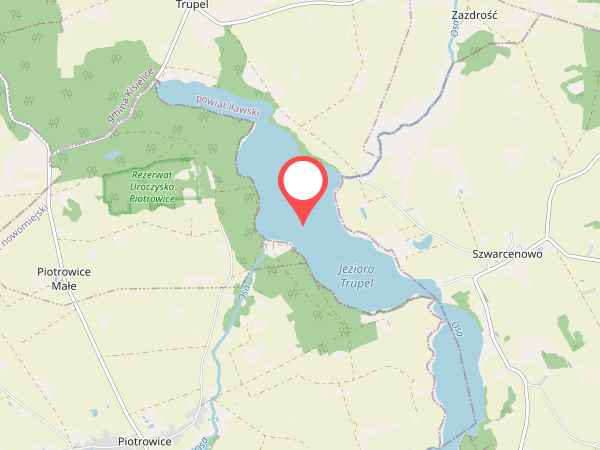 Jezioro Trupel jest bardzo malowniczo położnym akwenem, którego powierzchnia wynosi około 278 hektarów. Trupel to zbiornik przepływowy, jego dopływ to Osa, odpływem jest rzeka Młynówka. Maksymalna głębokość jeziora sięga 7.8 metra, dno jest z reguły piaszczyste, jedynie miejscami leży muł. Brzegi jeziora łagodnie schodzą do wody i porastają je wierzby oraz olchy. Natomiast wokół brzegów rośnie szeroki pas roślinności szuwarowej, wśród której dominuje oczeret, jeżogłówka i trzcina. W południowej części jeziora znajdują się trzy niewielkie wysepki, z których jedna jest zalesiona i zamieszkana przez kormorany.