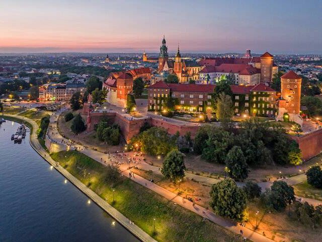 Zamek Królewski na Wawelu, gdzie zwiedzający mogą zobaczyć komnaty królewskie, zbrojownię i kryptę, w której spoczywają królowie w Polsce. Kraków to także piękne Stare Miasto z