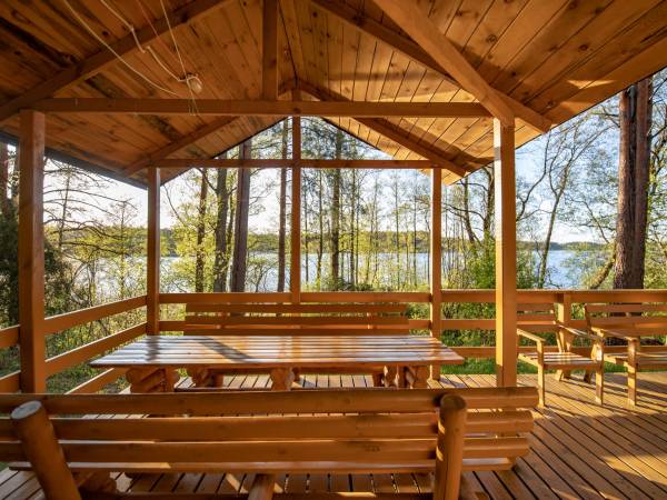 Domek położony w malowniczym ,letniskowym zakątku Kaszub otoczonym sosnowym lasem nad jeziorem Wiejskim w miejscowości Łąkie nr 114. W odległości niespełna 190 m znajduje się atrakcyjne dla dzieci i dorosłych kąpielisko z obszerną piaszczystą plażą. Domek w pełni wyposażony ,posiada dwie sypialnie. W każdej sypialni jest łóżko małżeńskie oraz pojedyncze podwieszane.W salonie rozkładany duży narożnik , nowoczesna komoda oraz TV (cyfrowy polsat). W aneksie kuchennym pojemna lodówka, płyta indukcyjna, express do kawy,czajnik elektryczny , kuchenka mikrofalowa oraz zmywarka. W łazience duża kabina prysznicowa, umywalka,pralka ,suszarka do ręczników. Ponadto przy wejściu do domku jest obszerny zadaszony taras ze stołem i siedziskami dla 6 osób.Na dużym, niezadaszonym, bocznym tarasie znajduje się ratanowy zestaw wypoczynkowy. W domku gospodarczym miejsce na rowery i inny sprzęt turystyczny - leżaki, grill ,zabawki dla dzieci.