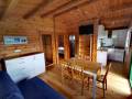 Bardzo miły, przytulny, nowocześnie wyposażony drewniany domek. Na działce znajdują się 3 podobne domki, są atrakcje dla dzieci w postaci trampoliny,...