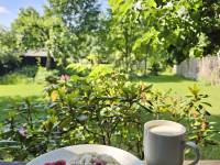 Na zewnątrz czeka duża altana – idealna na poranną kawę lub wieczorne rozmowy przy winie. Jest też miejsce na ognisko i grill, które sprzyjają integracji. W słoneczne dni można leżeć na trawie lub na leżaku, czytać książki, słuchać śpiewu ptaków i zapomnieć o zegarku.