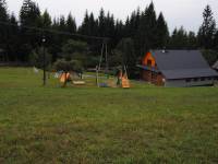 Oferujemy noclegi w 2 pokojach dwuosobowych, 1 pokoju trzyosobowym, salonie z telewizorem i łóżkiem małżeńskim oraz rozkładaną sofą dwuosobową. W cenę wliczony jest komplet pościeli i ręcznik. Do Państwa dyspozycji są dwie łazienki, pierwsza na piętrze z wc i wanną, druga na parterze z wc i prysznicem i pralką. W stałym wyposażeniu jest ponadto żelazko, deska do prasowania i suszarka do włosów. W pełni wyposażona kuchnia, umożliwiająca samodzielne przygotowanie, a także ugotowanie posiłków. Całość z kuchnią tworzy jadalnia, gdzie możecie zasiąść wygodnie i spożyć jedzenie. Tuż obok domu i sadu wydzielone jest miejsce ze sprzętem do grillowania oraz dużym placem zabaw dla dzieci, a także boisko do gry w piłkę nożną. Przy domu znajduje się nieodpłatny duży parking.