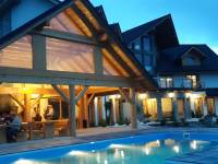 Basen z podgrzewaną wodą i profesjonalne jacuzzi na świeżym powietrzu – idealne do relaksu po dniu pełnym atrakcji.