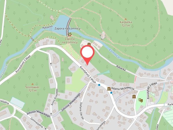 Budynek zlokalizowany jest blisko centrum przy zaporze na Łomnicy w miejscu, które stanowi dogodną bazę wypadową do wycieczek w góry i wyciągów narciarskich.