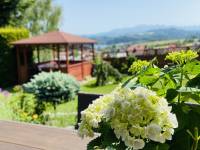 Z okien roztacza się widok na Jezioro Czorsztyńskie, Tatry, górę Wdżar ze stacją narciarską, oraz pasmo Lubania.