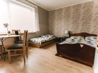 Proponujemy atrakcyjne pokoje 2, 3, 4 lub 5 osobowe z łazienkami , telewizorem,lodówką. Wszystkie są starannie i przytulnie urządzone. Łazienki wyposażone w natryski. Na każdej kondygnacji znajduje się aneks kuchenny w pełni wyposażony do przygotowywania posiłków.