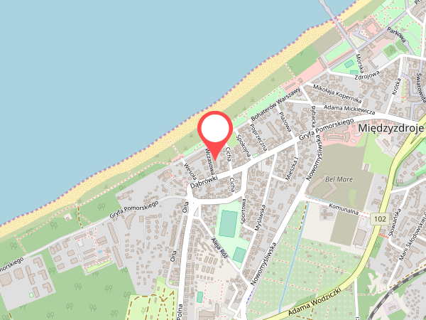 Nasz obiekt oddalony jest tylko 70 metrów od dwóch zejść na plaże. Plaża przy naszym obiekcie jest szersza niż przy molo i mniej oblegana .W okolicy dwie stołówki, liczne bary, sklepy spożywcze w odległości około 150 m ( sklep ABC i żabka). Do centrum miasta około 300 m. W bliskiej odległości las, plac zabaw dla dzieci oraz przystanek autobusowy linii Międzyzdroje - Świnoujście.