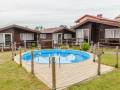 Dom wykonany w całości z bali drewnianych, nadających swojski klimat i atmosferę budynkowi. Dom położony na niemal hektarowej nieruchomości przy drodze powiatowej prowadzącej do Jastrzębiej Góry (około 3 km), pomiędzy dwiema wioskami. Na działce zlokalizowane są miejsca parkingowe o powierzchni 300 m2. Pozostałą część działki porasta praktycznie zieleń, z centralnie położonym stawem (obecnie niestety trochę zarośniętym;). Obiekt polecany szczególnie dla osób, które po całodziennym spędzaniu czasu w tzw. centrach wakacyjnych, cenią sobie spokój, kończąc dzień przy grillu i ... piwkiem pod wiatą. W odległości około 500 metrów dwa dobrze zaopatrzone sklepy spożywcze:). Osoby które w deszczowe dni zdecydują się pozostać na miejscu, będą mogły przenieść się w lata 80 i 90 grając w kultowe w tamtym okresie gry, na ogólnodostępnym automacie. Zajęcie znajdą również osoby dbające o swoją sylwetkę i kondycję - do dyspozycji rower stacjonarny i orbitrek.