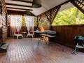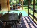 W domku znajdują się pokoje sypialniane, przedpokój, aneks kuchenny oraz łazienka z natryskiem (możliwość wynajmu połowy domku). Przy domkach umiejscowione są stoły, ławki oraz tarasy.