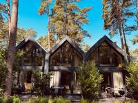 FOREST HOUSE to sześć komfortowo urządzonych domów w stylu nowoczesnej stodoły, usytuowanych koło lasu w cichej części Pobierowa. Front elewacji w każdym z domów jest całkowicie przeszklony.