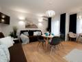 - W jednym pokoju małżeńskie łóżko (160 cm) i szeroka, rozkładana kanapa + TV, w drugim - szeroka, rozkładana kanapa.
