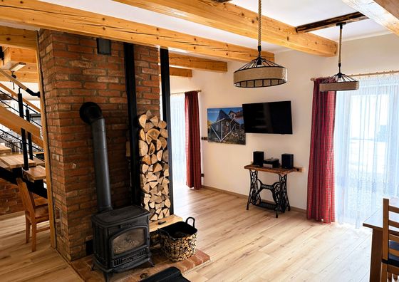 Natychmiastowa rezerwacjaZawoja Pokaż na mapie 20 km od Rychwałdek Darmowy parking Jacuzzi Przyjazny zwierzętom WiFi Domek 6-osobowy Domek: 4 łóżka (2 pojedyncze, 2 podwójne)