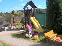 Dla milusińskich jest plac zabaw: piaskownica, huśtawki, zjeżdżalnie, itp.