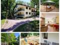 Posiadamy od tego roku również do wynajęcia domek 8 osobowy z kominkiem, z piwnicą do przechowywania np rowerów. Usytuowany jako sam na samodzielnej ogrodzonej działce z kącikiem zabaw dla dzieci.