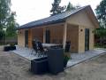 Domek z zadaszonym tarasem przeznaczony jest dla 2-6 osób, znajduje się w nim sypialnia z łóżkiem małżeńskim, sypialnia z dwoma pojedyńczymi łóżkami, salon z aneksem kuchennym oraz łazienka. Istnieje możliwość rozłożenia narożnika w salonie dla dwóch osób.