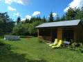 Domek i przyczepa stoją na wydzielonym terenie ok 150 m od domu gospodarzy.