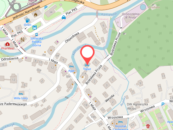 "TOPAZ" położony jest w centrum Szklarskiej Poręby, 10 minut pieszo do dolnej stacji wyciągu krzesełkowego na Szrenicę. Położenie blisko największych atrakcji miasta: licznych kawiarni, restauracji, szlaków turystycznych oraz wyciągów narciarskich sprawia, że pobyt w naszym domu jest idealny dla tych którzy pragną aktywnie wypoczywać.
