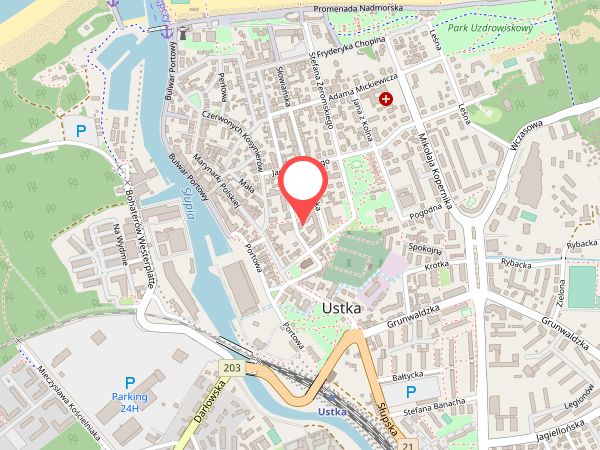 Jest to nowy obiekt, położony w centrum, w spokojnej dzielnicy Ustki, 450 m do promenady (morze), 3 min. do portu, 50 m do blisko PKP, PKS, kościół, naprzeciwko sklep NETTO