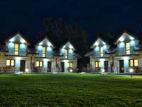 Do Państwa dyspozycji oddajemy pięć piętrowych domków z pełnym wyposażeniem. Domki posiadają własny taras z kompletem krzeseł i stolikiem. W każdym domku znajduje się salon z aneksem kuchennym, sypialnia lub dwie sypialnie oraz łazienka. Na wyposażeniu każdego z apartamentów znajduje się TV LCD 40 cali+SAT, lodówka, płyta ceramiczna, mikrofalówka, czajnik, opiekacz do kanapek, komplet naczyń, suszarka do włosów, pralka automatyczna, żelazko i deska do prasowania. Gratis w każdym domku znajduje się sprzęt plażowy oraz stały dostęp do bezprzewodowego internetu Wi-Fi.