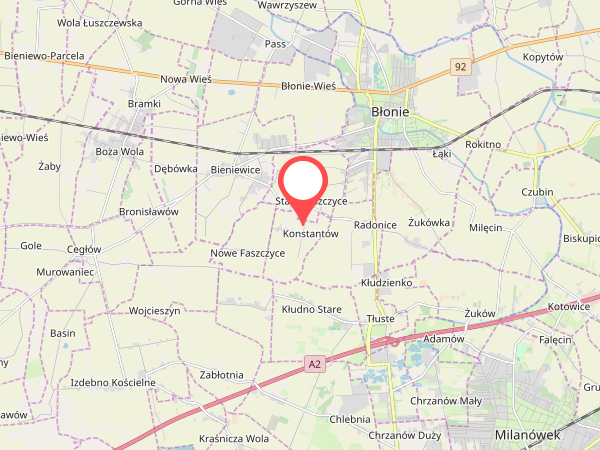 Gospodarstwo "Konstantów" położone jest 3 km od Błonia i 27 km od Warszawy, a także w pobliżu takich miejscowości jak Grodzisk Mazowiecki, Ożarów Mazowiecki, Niepokalanów i Żelazowa Wola.
