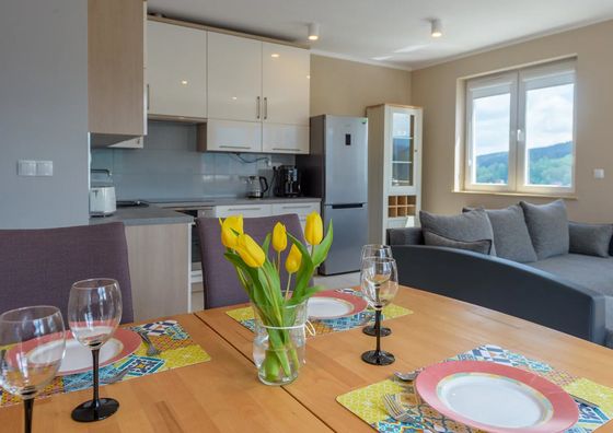 Natychmiastowa rezerwacjaSzklarska Poręba Pokaż na mapie 28 km od Miłoszów Darmowy parking Przyjazny zwierzętom WiFi Apartament 4-osobowy Apartament: 30 m2 3 łóżka (2 pojedyncze, 1 podwójne)