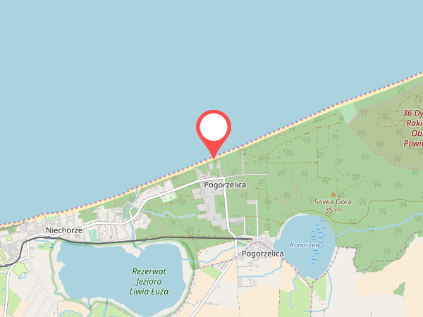 Z centrum na plażę w Pogorzelicy można się dostać w kilka minut – wystarczy 300-metrowy spacer. Na plażę można dostać się jednym z wejść, które biegnie przez las lub wydmy.