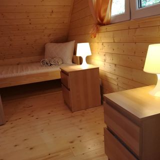 Oferujemy Państwu komfortowo wyposażone domki 3 ,4 i 5 osobowe z łazienkami, aneksem kuchennym i pełnym węzłem sanitarnym. Na miejscu udostępniamy bezprzewodowy internet Wi-Fi, plac zabaw dla dzieci, boisko do gry w siatkówkę lub badmintona, stół do tenisa oraz wypożyczamy rowery do jazdy rekreacyjnej po przepięknej okolicy. Przed każdym domkiem istnieje możliwość zaparkowania własnego samochodu, co z pewnością jest dużym udogodnieniem.