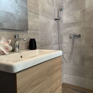 Brakuje zasłon w prysznicu, ponieważ woda bardzo pryska.