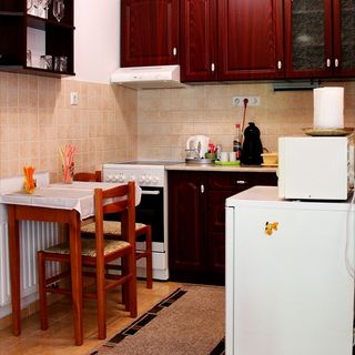 lipiec 2018Hú,az nagyon sok volt.Egyedül voltam,a mérete nekem pont megfelelő volt.A "tisztaság" csak 10-ig értékelhető,de én adnék rá vagy 36-ot. Ha egy lakásnál van értelme a patikatisztaságnak,na ez az volt. Ez azért is bravúr,mert találtam egy kutyalabdát,és ha volt kutya bent,akkor az után így takarítani...Nem gondolnám, hogy Bélabá ezt tömte az arcába horkolás ellen. A konyha 2 személyig nagyon jól felszerelt.Nem csak edényzet van,hanem minden olyan apróság, ami megkönnyíti az egyébként otthon hagyott mindennapokat.A zuhanyból RENDESEN FOLYIK A VÍZ!!!A csaptelepek nem priccolnak szanaszét a vízkőtől!A kenyérpirító morzsatálcája tükörnek is jó lenne!Az elektromos tűzhely olyan, mint ha nem lett volna még használva. Beszagoltam a mosógépbe, és rendes öblítőszaga volt, semmi állott bűz. Az üvegedényeken sehol egy vízcsepp folt. A szaguk semleges volt. A téjvé korszerű, van hdmi bemenete (és vga is!), lehet számítógépre kapcsolni. Van egy tartalék fotelágy, aki a kemény fekhelyeket szereti, ez tökéletes. A rendes ágy már ráülve is túl puhának tűnt. Sok a tükörfelület, volt kihez szólnom. A net elég gyors, nem kell várni, hogy valaki leszakadjon már a fézbukról. A lakótársak köszönnek, és előzékenyek!(!!!) A fürdőszoba elég nagy ahhoz, hogy kényelmesen lehet molyolni, trehány emberek többféle tisztálkodószert is találnak, mindegyik pontosan 84%-ra feltöltve. Van domesztosz is, ha valaki nagyon retkes. Ha valakinek nincs pottyantás utáni nedves törlője, azt is talál. A zuhanyfüggöny patyolattiszta, bátran kihúztam, nem tartottam gyíkemberektől. Ja, a földszinten balra lakó csajt érdemes megkukkantani! A megkukkantás nem egyenlő az ungabungával...