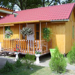 lipiec 2022Komfortos, felújított faház, az udvaron voltak játékok (bár némelyikre ráférne a csere, de a 3 éves lányom szivesen játszott velük), sőt játék konyha is van. A közös konyha külön épületben van, kicsit retro, de eléggé felszerelt (tűzhely, kávéfőző, vízforraló, edények, evőeszközök vannak).