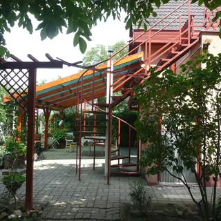 Az ágynemű egy kissé elhasználódott (összeesett tollpárnák), hiányzó ágyneműhuzat ( kispárna). A takaró nem a meleg nyári estékre való vastagságú (téli), túl meleg. Igaz, volt a szekrényben vékonyabb takaró. A szobában csak az ablak van szúnyoghálózva, az erkélyajtó nem. Talán nem is lehet kinyitni, szorult az ajtó, nem feszegettük. A tetőtér mindig melegebb, megszorul a levegő, jó lett volna este, kánikula után éjszaka nyitott erkélynél aludni. A csigalépcső oldalkorlátja kissé veszélyes. Igaz, velünk nem volt gyerek, de rájuk nézve még veszélyesebb. A korlát alsó és felső rúdja között még egy felnőtt is ki tud esni. Én gyereket felügyelet nélkül nem mernék a teraszon hagyni. Ez természetesen nem azt jelenti, hogy ez levon a szállás értékéből, hiszen józan ésszel lehet vigyázni, és a lépcsőn nem kell száguldozni. Csak még egy vízszintes korlát hiányzik szerintem. A kert nagyon szép, kimondottan romantikus hatást kelt, a látvány fentről és az utcaszinten is gyönyörű.