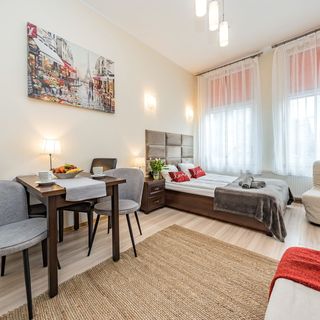 Oferujemy noclegi w komfortowo wyposażonym, zupełnie samodzielnym mieszkaniu o powierzchni 27m2 w którym możemy zakwaterować do 5 osób. Apartament znajduje się na parterze przy ul. Ogarnej w Gdańsku.
