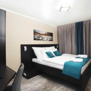 A szoba jobb volt, mint amire számítottunk: nappali/előtér + 2 külön hálószoba. A reggeli bőséges és finom volt. A hotel frekventált helyen van; a sétálóutca kb. 15 percre volt gyalog. Közel volt az állatkert/dínópark - emiatt jöttünk Kassára és választottuk ezt a hotelt. Összességében nagyon meg voltunk elégedve. Kicsit nehézkes volt a bejutás a parkolóba a sorompónál.