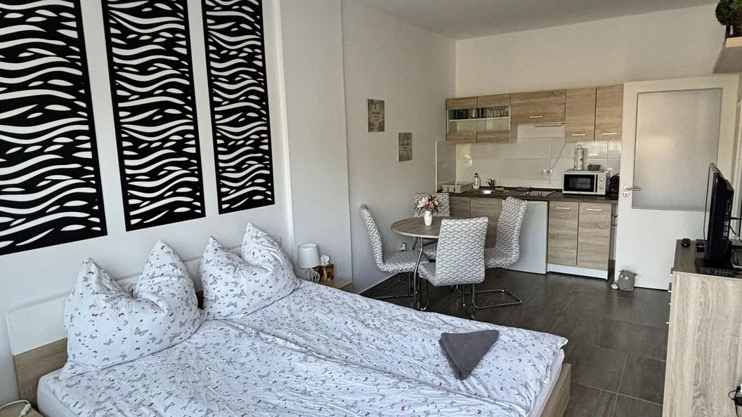 listopad 2021Sajnos csak egy éjszakát töltöttünk el ebben az apartmanban. A szállásadónk nagyon kedves volt. Az apartman tökéletes. Patyolat tiszta, jó illatú ágynemű várt ránk. A matrac nagyon kényelmes volt. Szép tisztaság, felszerelt konyha. Kávéfőző, vízforraló, hűtő. ....stb. A szekrényben kávé, cukor, reggelire zabkása is be készítve. A fürdőszoba modern és tiszta. Jól eső meleg várt ránk amikor megérkeztünk. Nagyon jól éreztük magunkat! Örülünk, hogy rátaláltunk erre az otthonos és nyugodt apartmanra. Mindenkinek ajánljuk! Feltétlenül jöjjenek el ide és csodás élményben lesz részük.