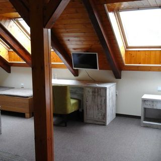3 patra bez výtahu, nošení kufrů, pro seniory příšerné. Podkrovní pokoj za tropických veder je možné obývat pouze s klimatizací. Ta naštěstí fungovala. Nejsme závislí na TV , ale mít ještě TV přístroje se setoboxem je hodně staré. Zapnutí bylo možné s pomocí personálu, po vypnutí už další zapnutí nebylo možné.